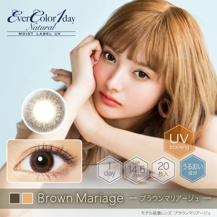 Brown Mariage layers a dark-brown rim over a sheer, warm inner tone to build quiet depth. The 13.8 mm graphic subtly enlarges while the pixel-blend print keeps edges soft and natural; MPC moisture and UV-cut tech support comfortable, everyday wear.