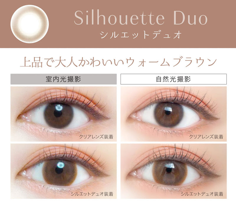 Two warm-brown tones in a uniform dot gradient fade toward a clear center and a softly blurred edge, gently enlarging the iris (G.DIA 13.8 mm) for a refined, mature-natural look.