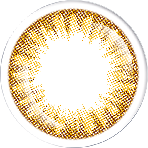 Two-tone print with a champagne-gold inner halo and a soft brown ring. The compact 12.9 mm graphic adds bright depth and gentle, natural enlargement.