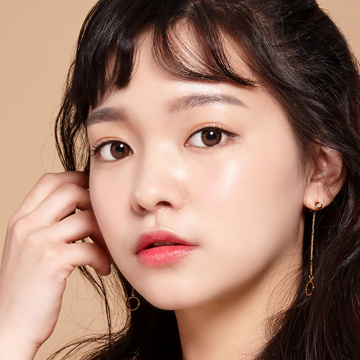 Warm caramel-brown with a soft ring and bright inner halo. 13.6 mm graphic on 14.3 mm DIA for clear, natural definition HEMA daily lens, 38% water.