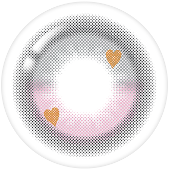Strawberry-pink hearts soften cool gray for a cute, romantic glow. A 13.3 mm G.DIA on a 14.3 mm lens adds gentle, wearable enlargement without harsh edges.