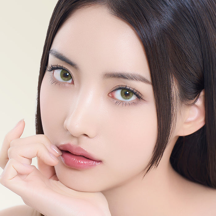 Rimless green gradation (no limbal ring) for a soft-focus look that still covers dark irises. 13.4 mm G.DIA on 14.2 mm DIA gives natural yet noticeable definition.