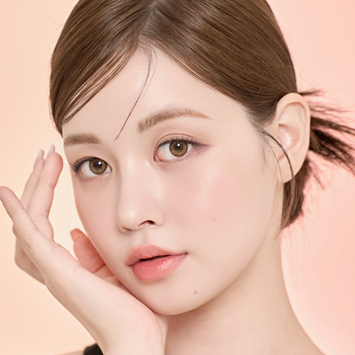 Peach-brown gradation with a soft charcoal rim and bright inner glow. Fine pixel-dot print blends seamlessly; 13.5 mm G.DIA on 14.0 mm DIA for natural, defined enlargement.