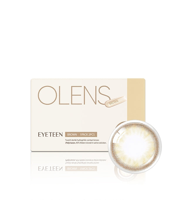 Olens EyeTeen Brown Monthly lenses combine an understated circle-line pattern with a clear, gold-brown tone to impart a naturally luminous depth that brightens the iris without appearing artificial. Precisely engineered at 14.2mm overall diameter and 12.8mm graphic diameter on an 8.6 mm base curve, they subtly enlarge the eye for a wide-eyed look that feels inherent to your own eyes. Constructed from breathable HEMA material with 40% water content, the lens design balances vivid color play with lasting comfort and moisture retention throughout monthly wear.