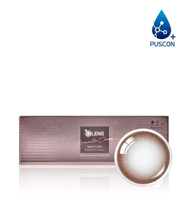 The OLENS 1 Day Misty Romantic Choco lenses are crafted to elevate your look with understated elegance. With a 14.2 mm total diameter and 13.2 mm graphic diameter, they subtly enhance the eyes without exaggeration, perfect for those seeking a natural yet refined effect. The rich choco tone, paired with a delicate inner pattern, adds cinematic depth. Meanwhile, the 8.7 mm base curve, 48% water content, and soft PUSCON material ensure breathable, comfortable all-day wear, making them as practical as they are beautiful.