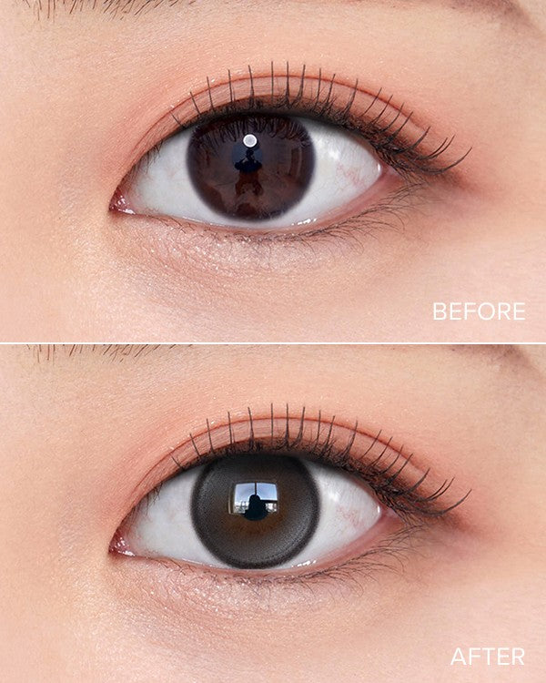 Natural teary eyes with a dual highlight pattern meets on-the-glow color for a glistening, dimensional gray gaze. Balanced enlargement with a 13.3 mm graphic.