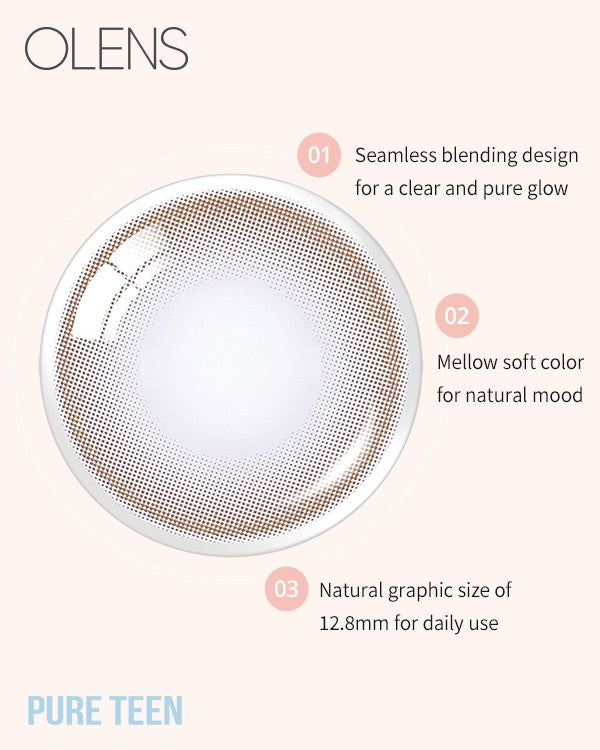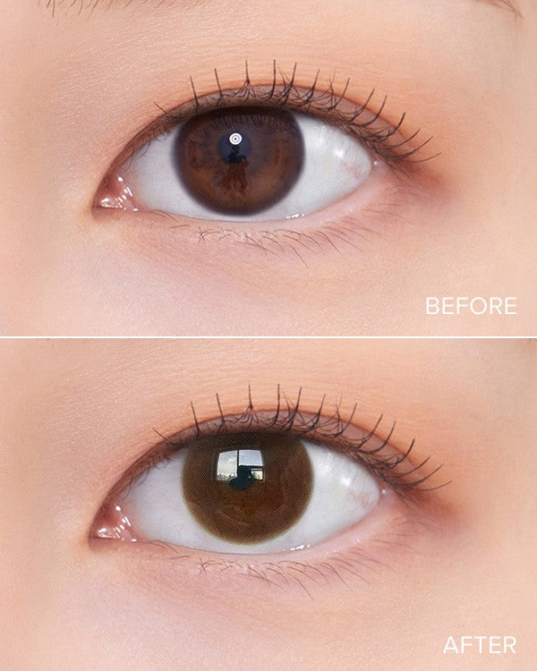 Clear pure glow with a mellow brown tone blends softly for a natural mood. The 12.8 mm graphic keeps enlargement subtle perfect for daily eye styling.