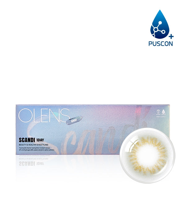 OLENS Scandi 1-Day Gray daily disposables blend advanced comfort technology with contemporary color design for an effortless eye upgrade. Featuring a seamless No Edge Line architecture, these lenses preserve authentic iris detail while layering cool gray hues for a lifelike effect. An 11.9mm graphic diameter creates a gentle big‑eye enhancement without appearing exaggerated.