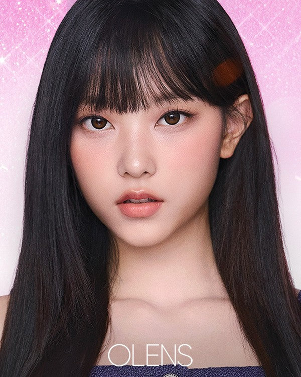 Warm mocha brown with a bold outer ring and glowy highlight pattern adds bright, doll-like dimension. The 13.6 mm graphic delivers big, standout enlargement.