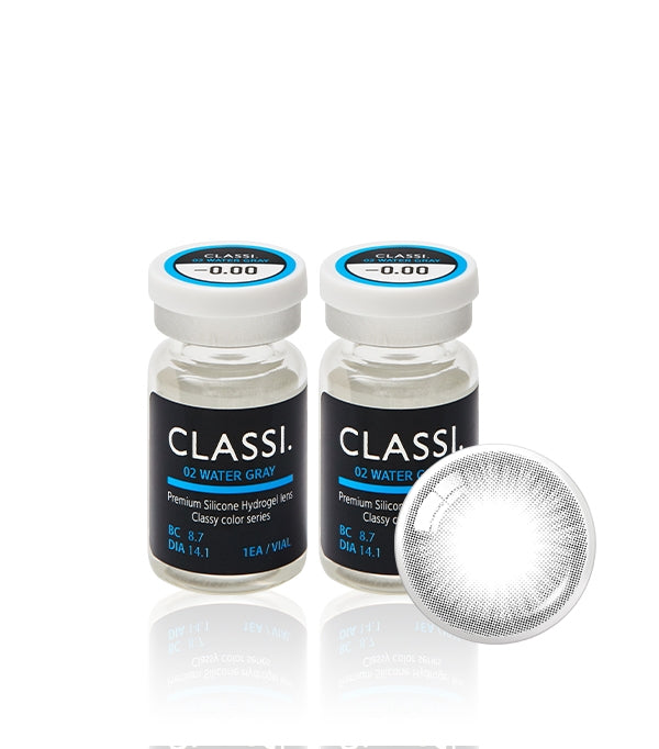 Classi Water Gray pairs a cool gray gradient with a calm edge line to deliver crisp, everyday definition. The medium 13.4 mm graphic diameter adds natural enlargement, while a translucent center and refined micro‑dot print blend smoothly with dark irises—clean depth without a harsh limbal ring.