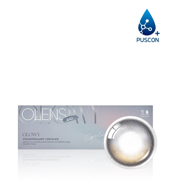 Elevate your daily eye game with OLENS Eyelighter Glowy 1 Day Black lenses. These daily disposables give you an instant “glowy” upgrade thanks to a multi-shade blended highlight pattern and deep edge line that mimic natural light reflections, adding realistic sparkle to your gaze. A 13.1 mm graphic diameter gently enlarges your iris for a subtle big-eye effect that feels authentic, never overdone.