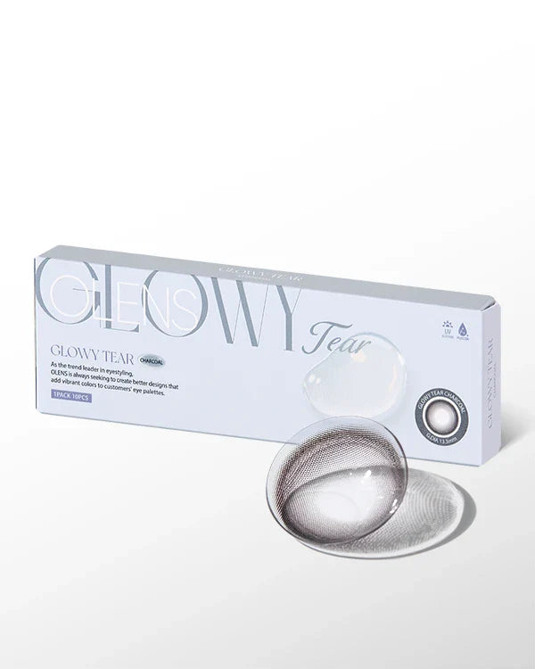 Glowy Tear 1-Day Charcoal features a dual highlight teary design layered over watery charcoal tones, creating a crystal-dewy shine that looks bright under different lighting. The 13.3mm graphic diameter keeps definition clear without looking oversized.