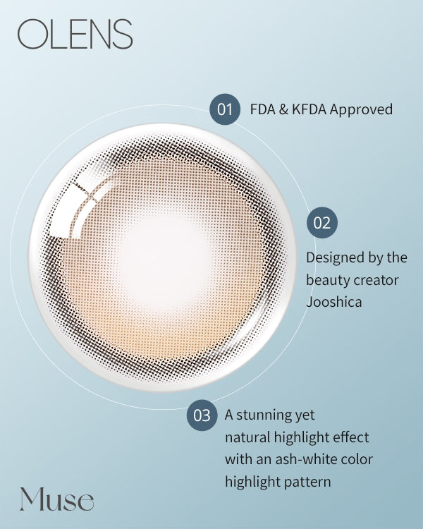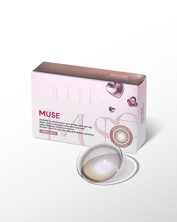 Muse Shine Brown is its signature dual-tone architecture: a warm brown pupil zone is overlaid with delicate ash-white pixel-fused highlights, all confined within a 13.3 mm graphic circle. This contrast-driven pattern captures and refracts light like glistening dew, sculpting multidimensional depth and a natural sparkle without harsh boundaries.