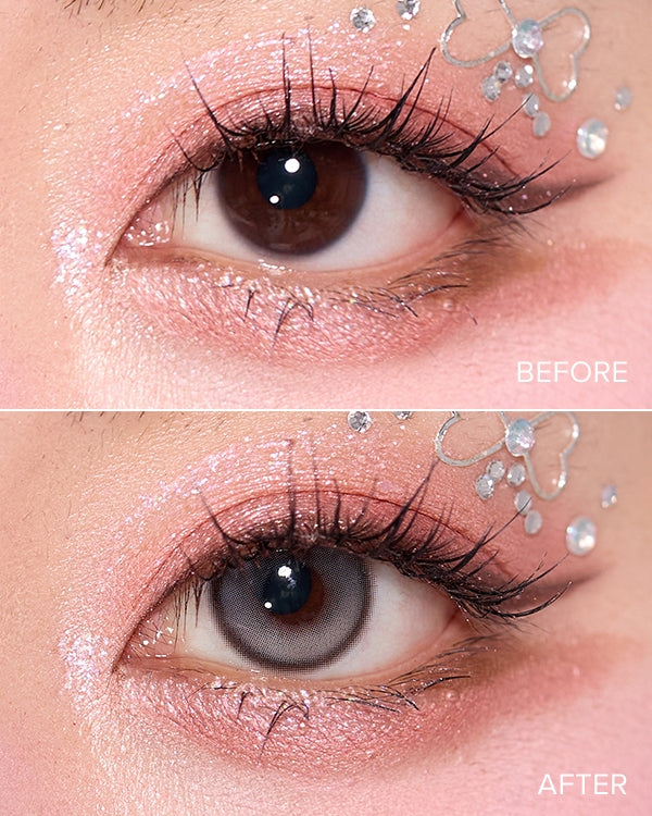 Muse Shine Gray features a contrast-driven pixel architecture: an ash-white highlight ring seamlessly overlays a cool gray base within a precise 13.3 mm graphic diameter, framed by a 14.0 mm total diameter. This layered design captures and refracts light like glistening dew across the iris, sculpting multidimensional depth and an organic, softly luminous gray-eyed effect without harsh boundaries.
