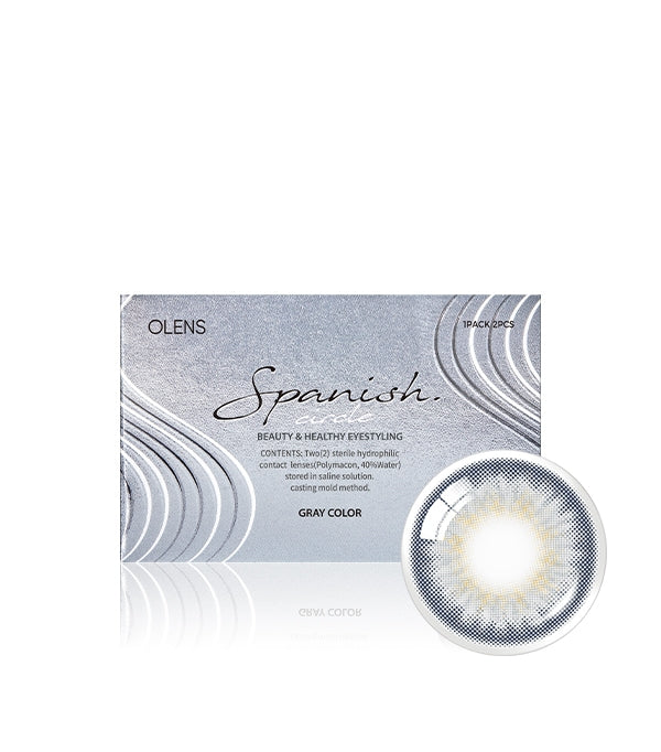 OLENS Spanish Circle Gray Monthly lenses blend a natural, soft-gray circle-lens design with breathable PHEMA comfort and convenient monthly disposability delivering hydrated, subtly enlarged eyes and reliable vision correction every 30 days.