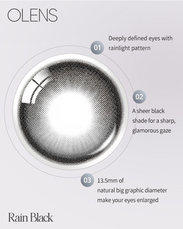 Define your eyes with a sheer black shade and a rainlight-inspired highlight pattern that creates a clear, watery shine instead of a flat black finish. With a 13.5mm graphic diameter, Rain Black delivers naturally bigger-looking eyes while keeping the look sharp, clean, and wearable.