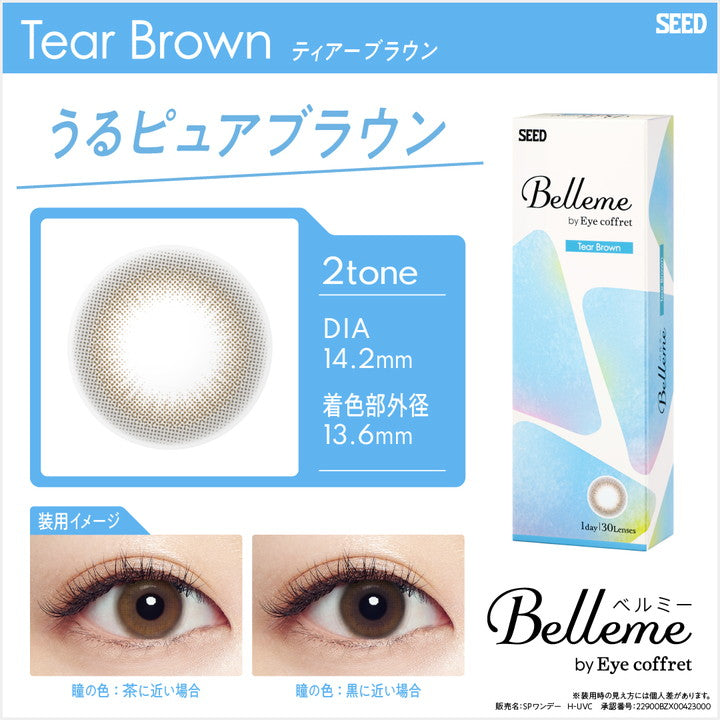 Soft brown ring with a 13.6 mm G.DIA and a 6.6 mm opening—ultra-natural, teary-gloss definition with a crisp pupil.